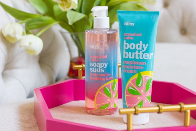 Weekends are always great for getting in a little shopping as well.  I’m always in and out of Kohl’s and a few weeks ago I discovered that Kohl’s is now carrying “bliss” products, which I am so thrilled about!  I’ve always loved their products but they weren’t always easily accessible and now…THEY ARE, YAY.  BRAVO Kohl’s for picking up this line…you have now given me yet another reason to shop at your store (although I really didn’t need another reason)!  Bliss offers spa like products that are luxurious without the steep steep price tag and again, as a woman in her mid 30’s excellent yet affordable skincare products is super important to me.  During one of my recent visits to Kohl’s, I stocked up on some of my favorites and I’m so excited to share them with you!