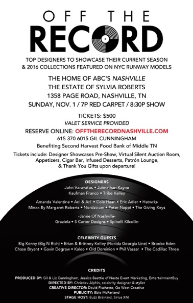If you live in Nashville or any of the surrounding areas, this is a night you won’t want to miss so mark your calendar! Tickets can be purchased at: Off The Record Nashville or by calling (615) 370-6015. You can also see more details on the invite below. Hope you will join us!
